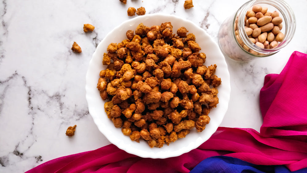 Masala Peanuts are spiced Indian style roasted peanuts that are coated with spices, herbs and flour.