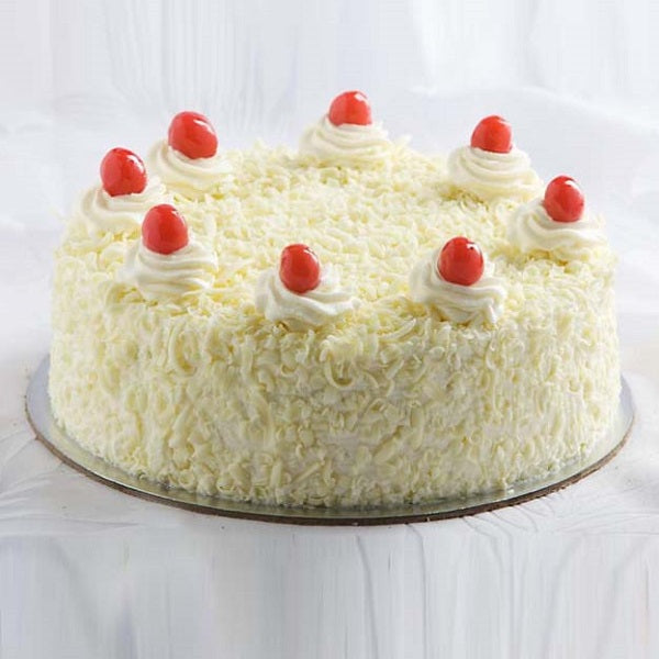 White forest cake is a layered cake made withvanilla sponge cake, whipped white chocolate ganache, cherry kirsch sause and cream cheese buttercream frosting.